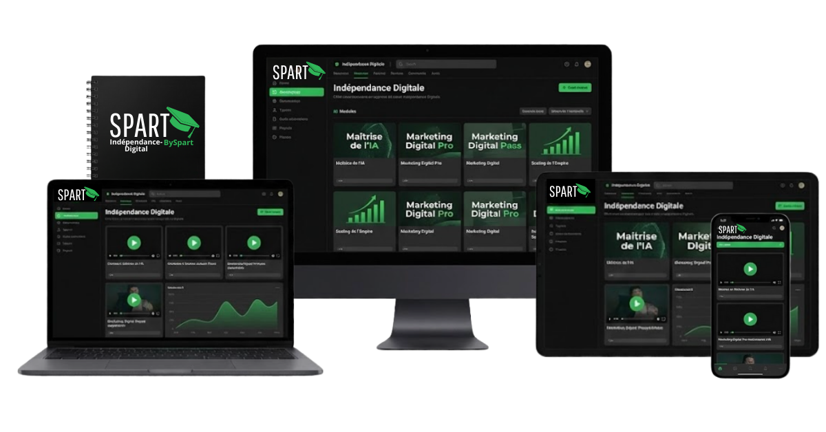 Une fois ton inscription confirmée, tu obtiendras un accès immédiat à notre plateforme d’apprentissage L'indépendance Digital BySpartgroup.