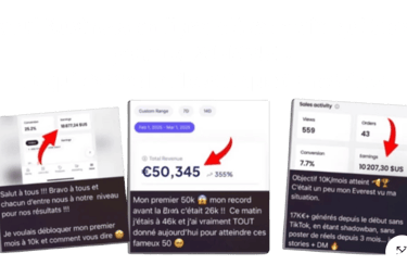 Tu maîtriseas les clés pour développer ta visibilité sur TikTok et Instagram, ainsi que les techniques de vente les plus puissantes pour générer rapidement tes premiers revenus.